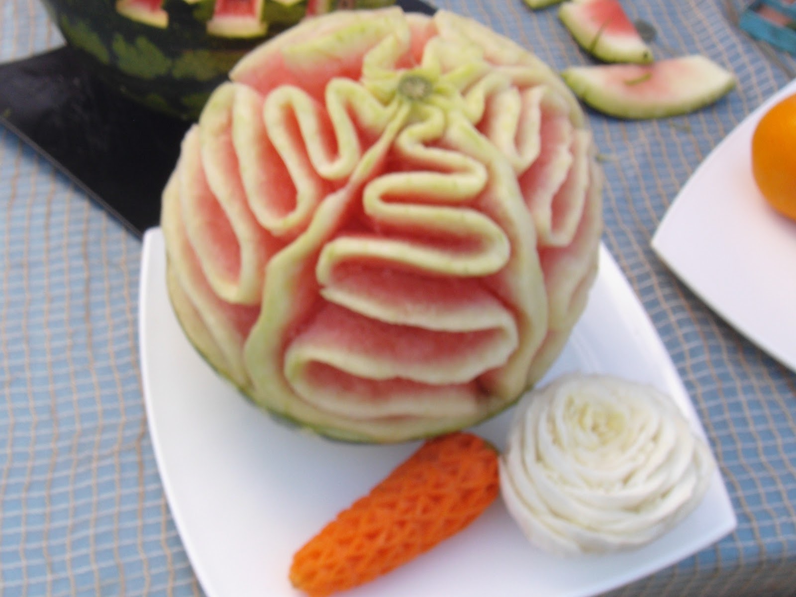 Представляю свежую подборку арбузных поделок с прошедшего фестиваля. В этом году фестиваль, а следовательно и мой фотоотчёт, обзавёлся двумя приятными сюрпризами в отличии от предыдущего. Во-первых появились поделки из арбуза особого сорта Лунный (селекционный вариант арбуза с мякотью жёлтого цвета) и возможность созерцать сам процесс создания поделки в начале и через время - готовый шедевр!